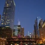 A sus pies se encuentra el paseo fluvial que recorre la ribera del río y los puntos de salida de los cruceros que invitan, entre abril y noviembre, a sumergirse en la arquitectura de Chicago desde el agua.