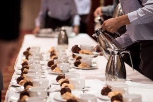 • Ofrecer el servicio dentro de la sala de reunión, ya sea con un servicio de camarero que deposite los platos que los delegados han encargado, o instalando un puesto portátil de comida dentro de la sala, para evitar mezclarse con otros grupos.