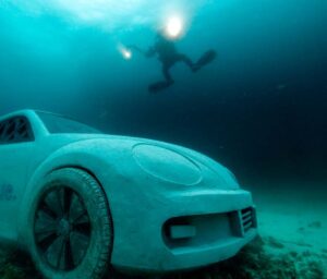 Tras aportar su granito de arena visitan el Museo Subacuático de Arte en Cancún, con estatuas que poco a poco se están convirtiendo en arrecifes donde se refugia la fauna marina. De hecho Starc Producciones contribuyó con la inmersión controla da de un auto VW Beetle en 2012.